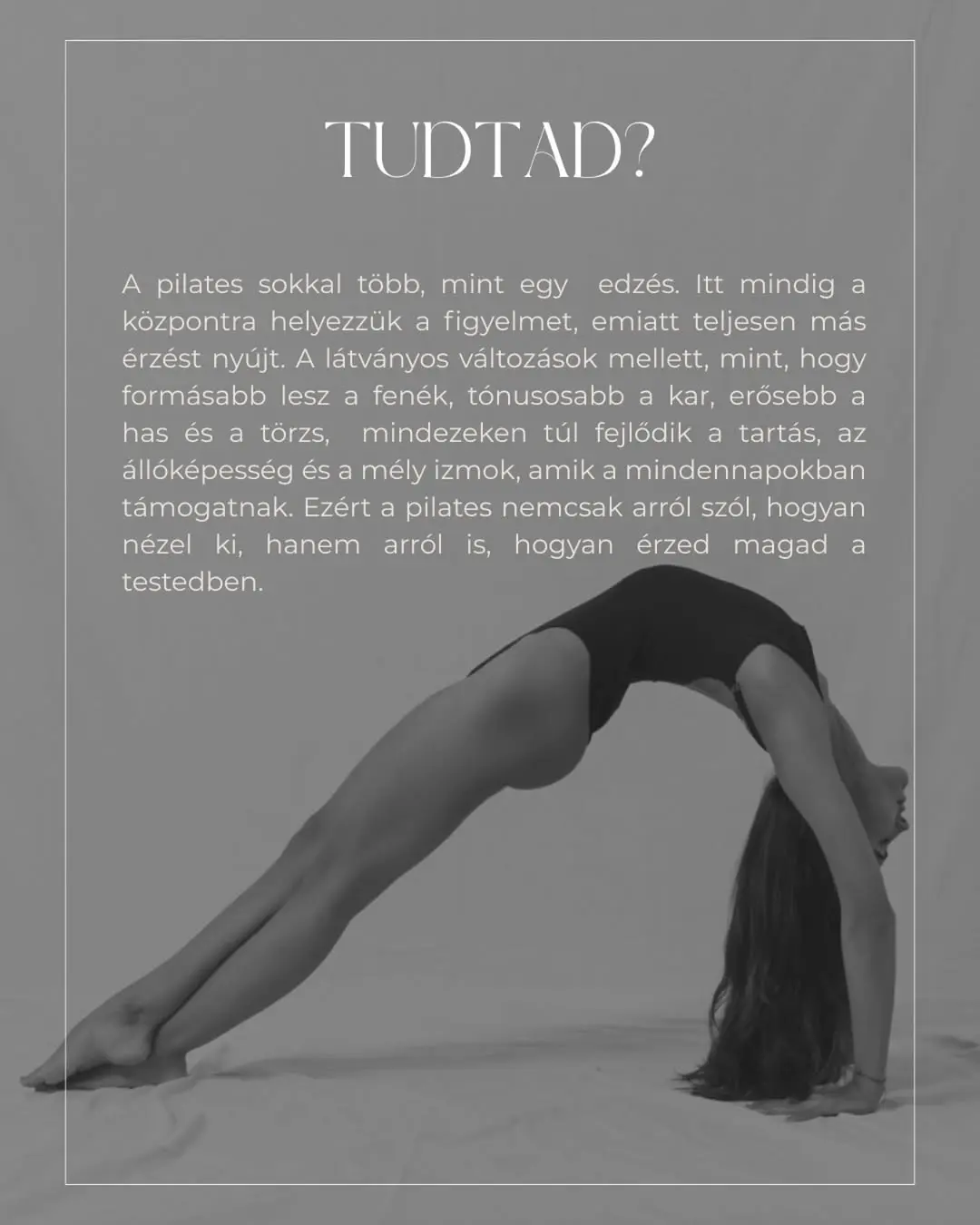 Próbáld ki Nálunk az első órád! Nálunk mindenki a saját tempójában fejlődhet, és az órák úgy vannak felépítve, hogy könnyen beletanulj a mozdulatokba. Nem kell hajlékonynak vagy tapasztalt sportolónak lenned, a pilates pont abban segít, hogy fokozatosan erősödj és fejlődj.